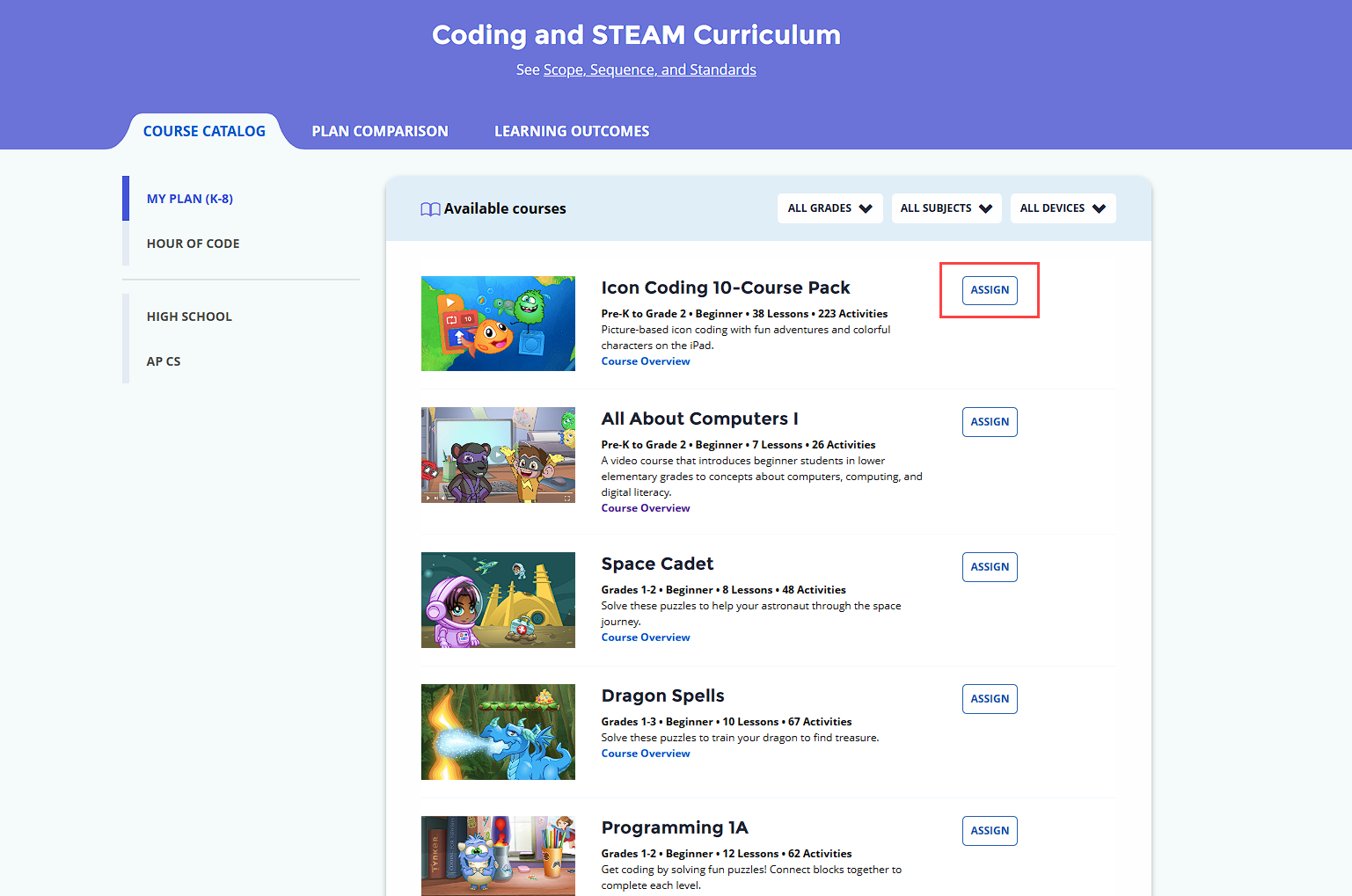 Find the course you want to assign and click the Assign button.