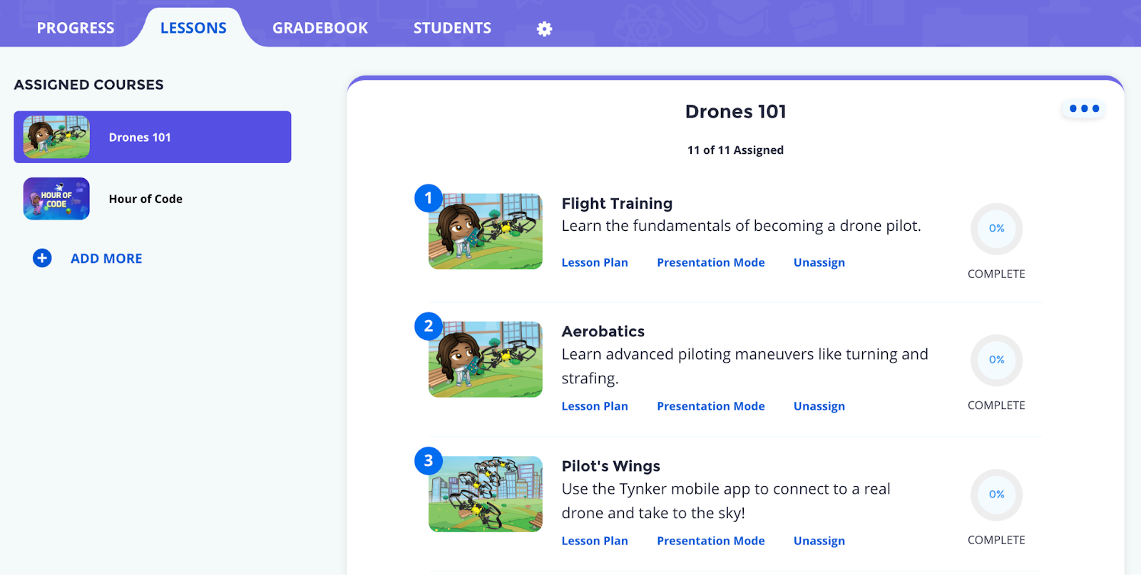 In the list of lessons on the right, click Assign or Unassign to determine which lessons are assigned to that class.