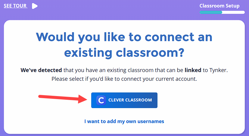 (If you logged in with a different email or a Microsoft account it will take you directly to manual class setup. See below for adding own usernames)