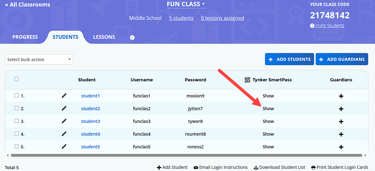 Give students the Tynker SmartPass to log in.