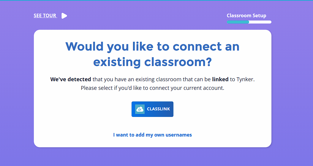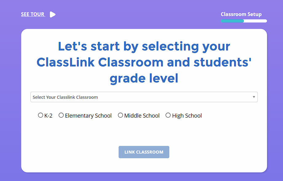 ClassLink classes are automatically detected. Click the ClassLink Classroom Button in order to connect your class.