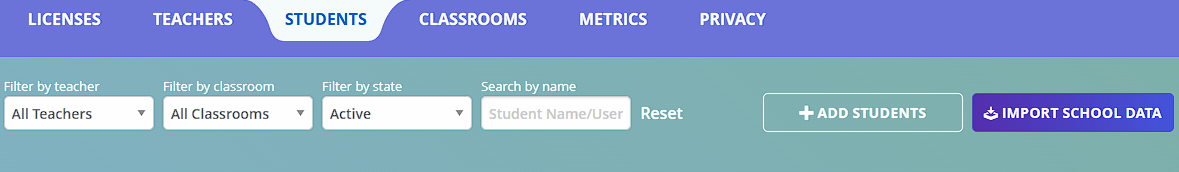 Click on the Students tab for school accounts or the Students page in your district dashboard.