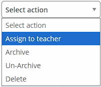 Select the classroom that you created and click on “Assign to teacher” under the “Select action” dropdown.