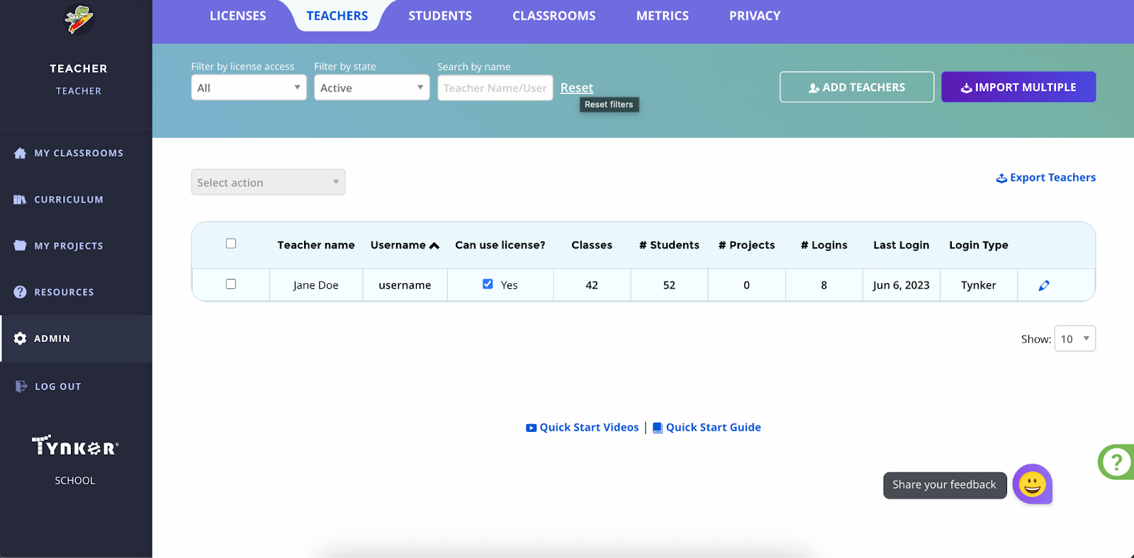 How can I import individual teachers to have access to a Tynker school license?