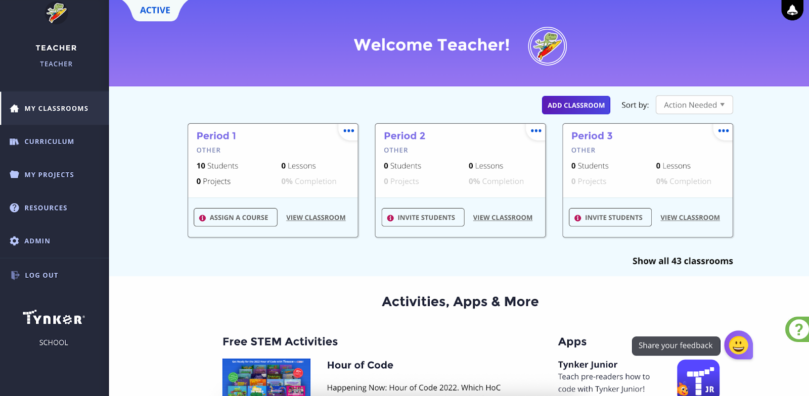 Go to tynker.com and sign in as a teacher