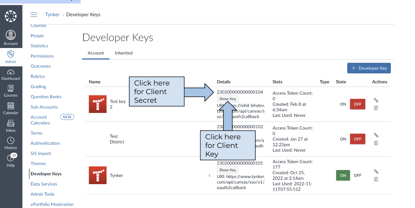 Redirect URI(Legacy): tynker.com/api/canvas/sso/v1/oauth2callback