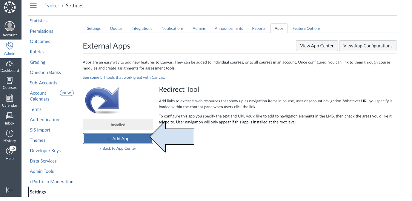 Change the name field to Tynker, place the URL you got back from schools@tynker.com in the URL redirect field, and click add app.